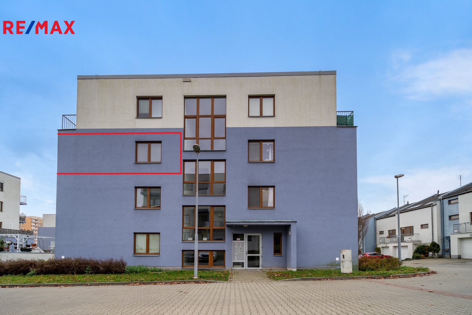 Byt se nachází v moderním domě z roku 2008, ve 3. patře ze 4, s orientací obývací části a balkonu na východ. Ložnice je otočená na sever, takže zůstává příjemně klidná.