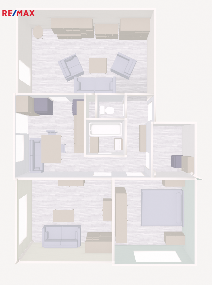 Velkým benefitem jsou dva samostatné balkony – jeden přístupný z kuchyně a druhý z obývacího pokoje. Díky tomu má byt příjemné propojení s exteriérem.